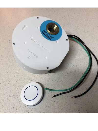 Uma válvula sem fio que se acopla ao chuveiro e permite ao hóspede pausar a água com apenas um clique, sem perder a temperatura ajustada